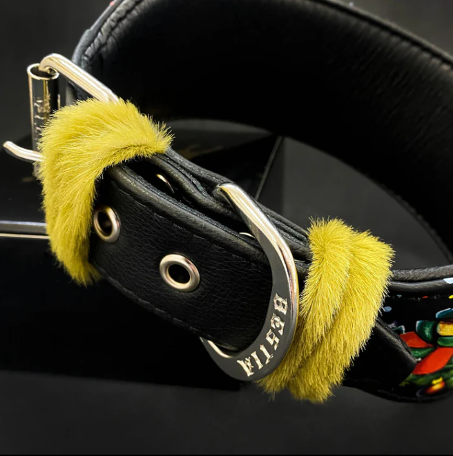 Inspiriert vom schelmischen Charme des fröhlichen Unruhestifters ist dieses Halsband ein festliches Meisterwerk. Es ist aus hochwertigem Echtleder gefertigt und präsentiert ein lebendiges, weihnachtliches Design , das dem Look Ihres Hundes Verspieltheit und Fröhlichkeit verleiht.